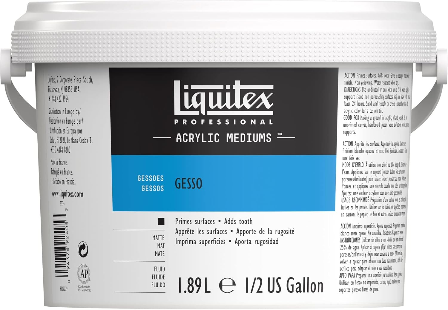 Liquitex Professional Gesso Surface Prep Medium, 1.89L (64-oz), White