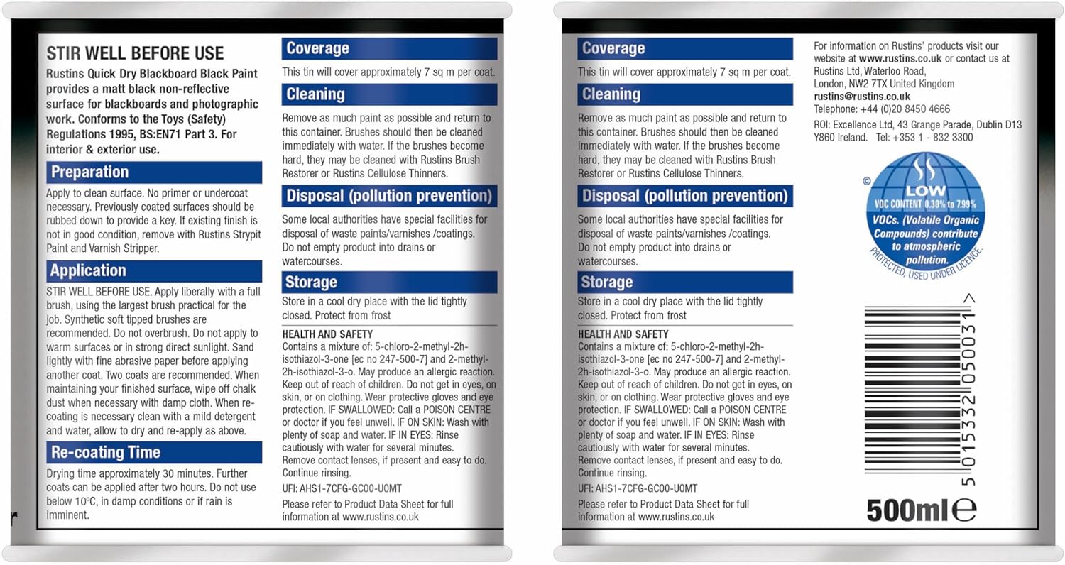 - Easy Application for Instant Creativity: Apply with ease and let your imagination flow. Rustins Blackboard Black Paint is designed for hassle-free application. ADD TO CART now for your creative haven.