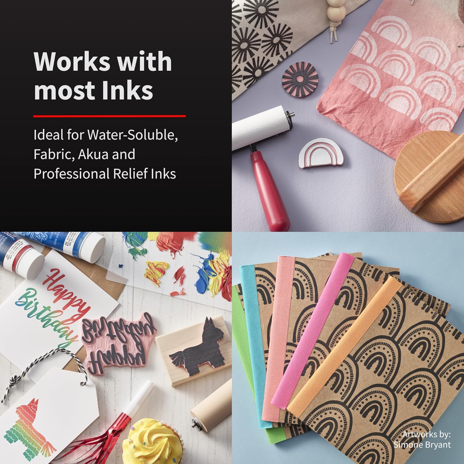 - SMOOTH PERFORMANCE WITH MOST INKS - Compatible with water-soluble, oil-based, acrylic and fabric inks, this brayer glides out evenly allowing you to create beautiful prints.