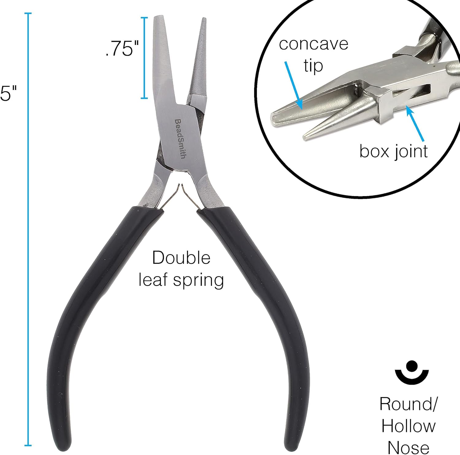 - One side of the nose is a classic round nose shape, and the other side is a concave shape that bends your wire in a perfect half-circle around the 'nose'.