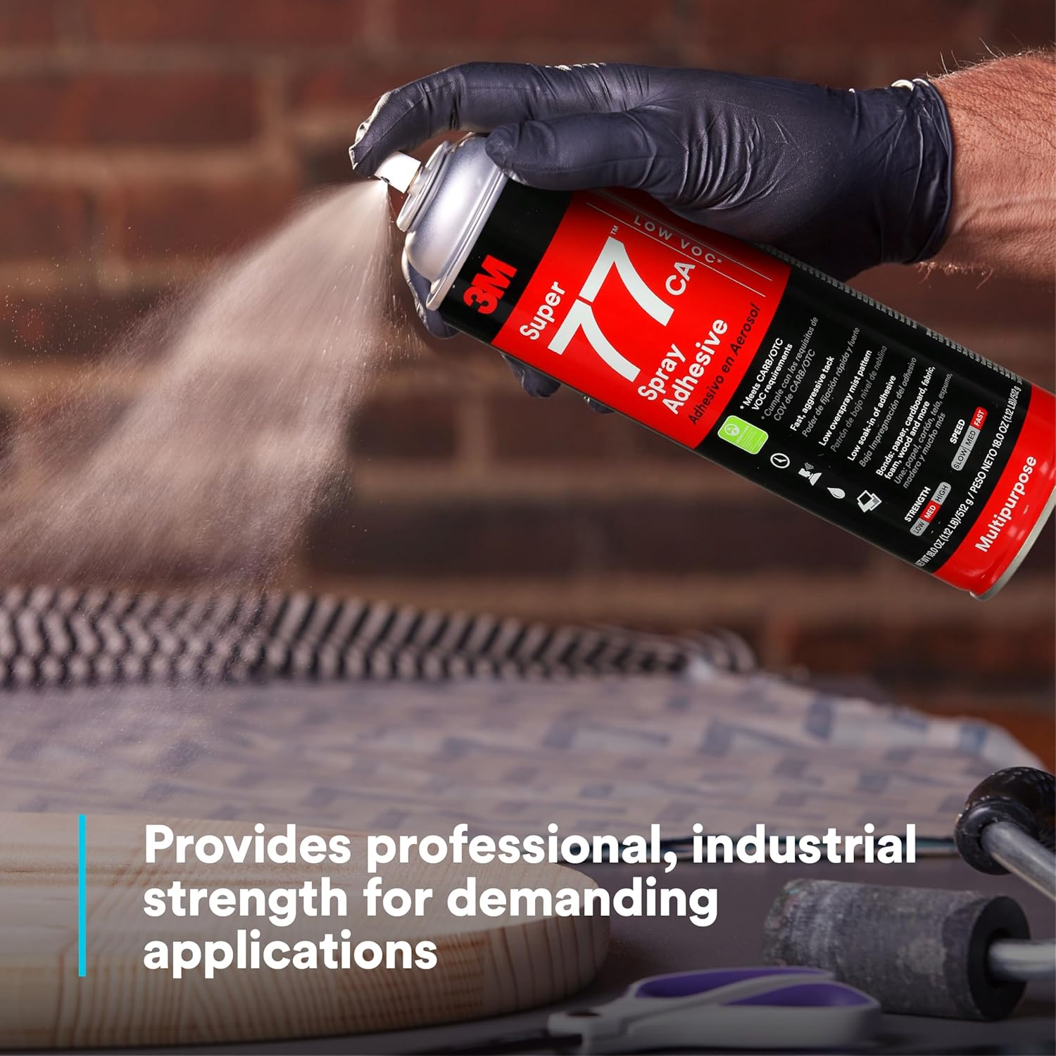 3M Super 77 Multipurpose Permanent Spray Adhesive Glue, Low VOC, Paper, Cardboard, Fabric, Plastic, Metal, Wood, Net Wt 18 oz