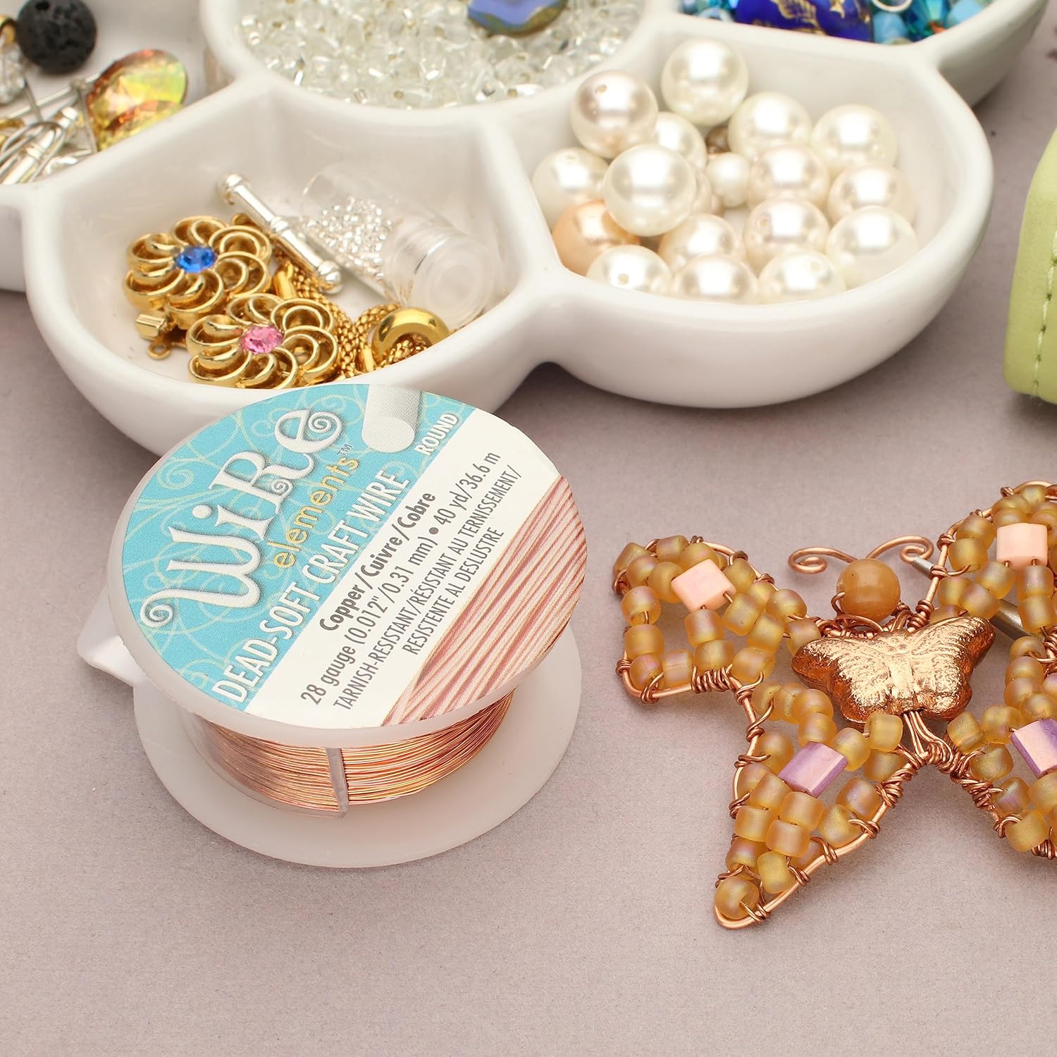 The Beadsmith Wire Elements Craft Wire – Tarnish Resistant, Soft Temper, Round, Copper Color – 0.32mm, 28 Gauge, 40 Yard Spool – Jewelry Making, Wire Wrapping, Floral, & Other DIY Crafts