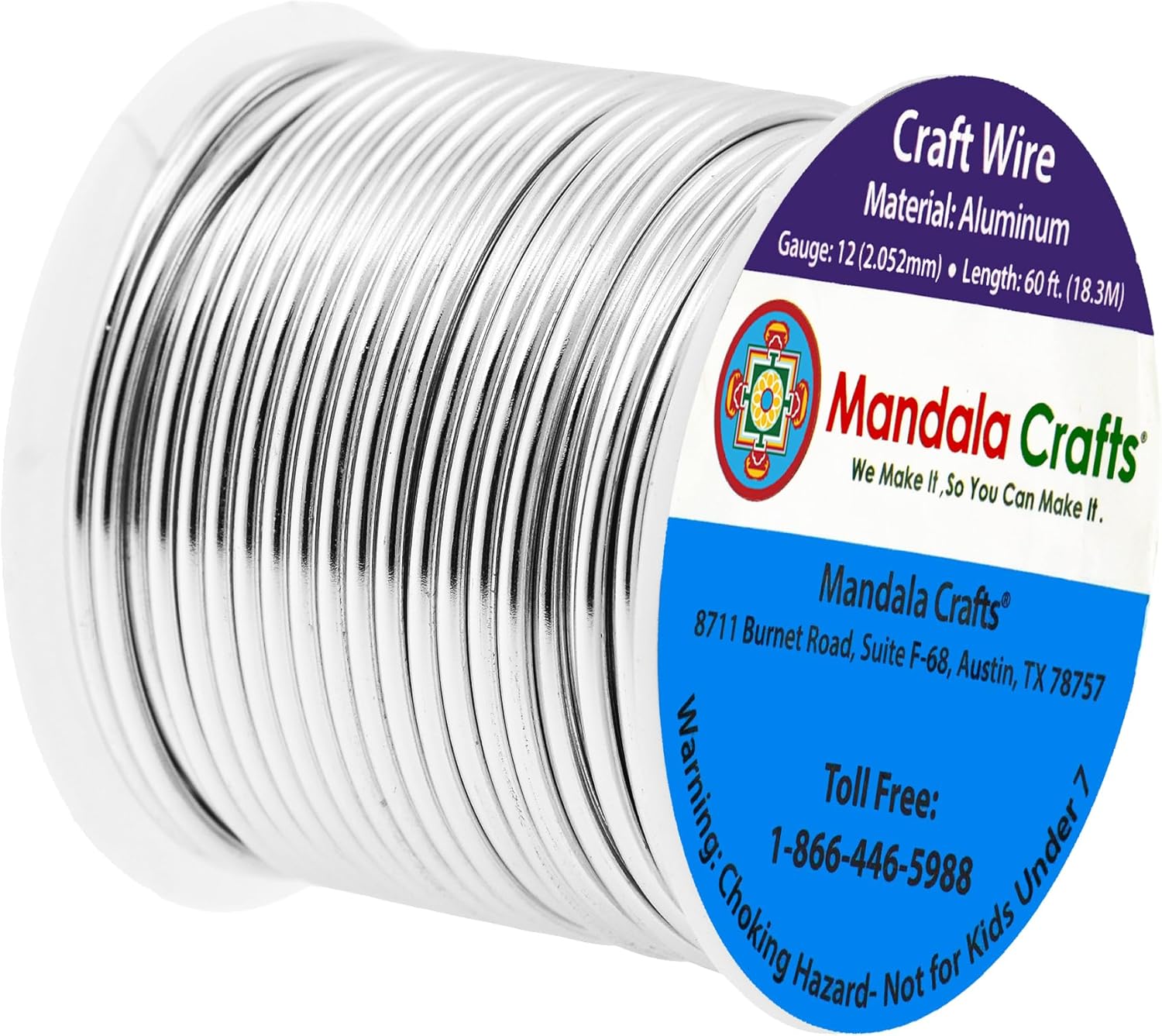 Mandala Crafts 12 Gauge Anodized Aluminum Craft Wire for Jewelry Making - 60 FT Colored Flexible Silver Tone Wire - Bendable for Bonsai Armature Crafting Sculpting