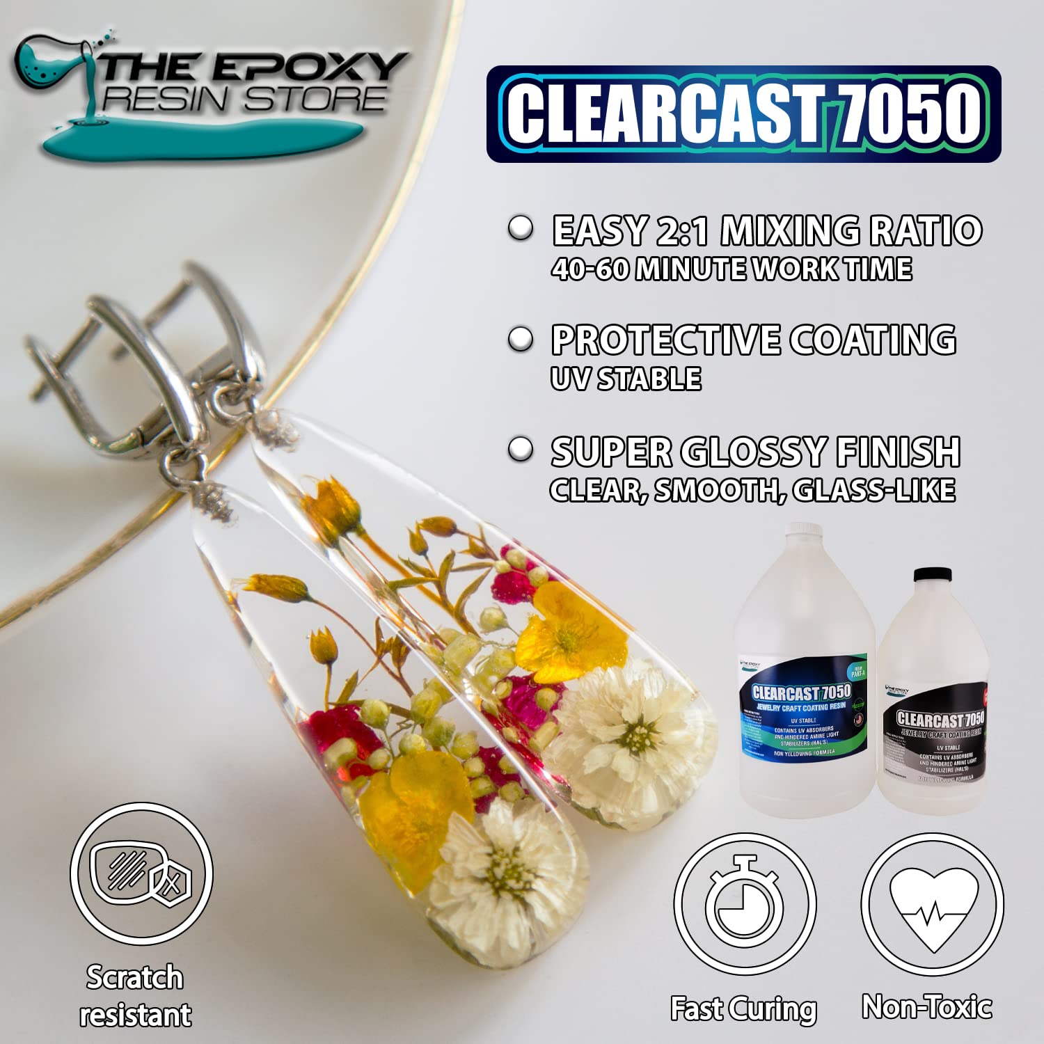 The Epoxy Resin Store Clearcast 7050 UV Resisting Jewelry Craft 2 Part Resin Kit for Art and Decorative Applications, 1.5 Gallons