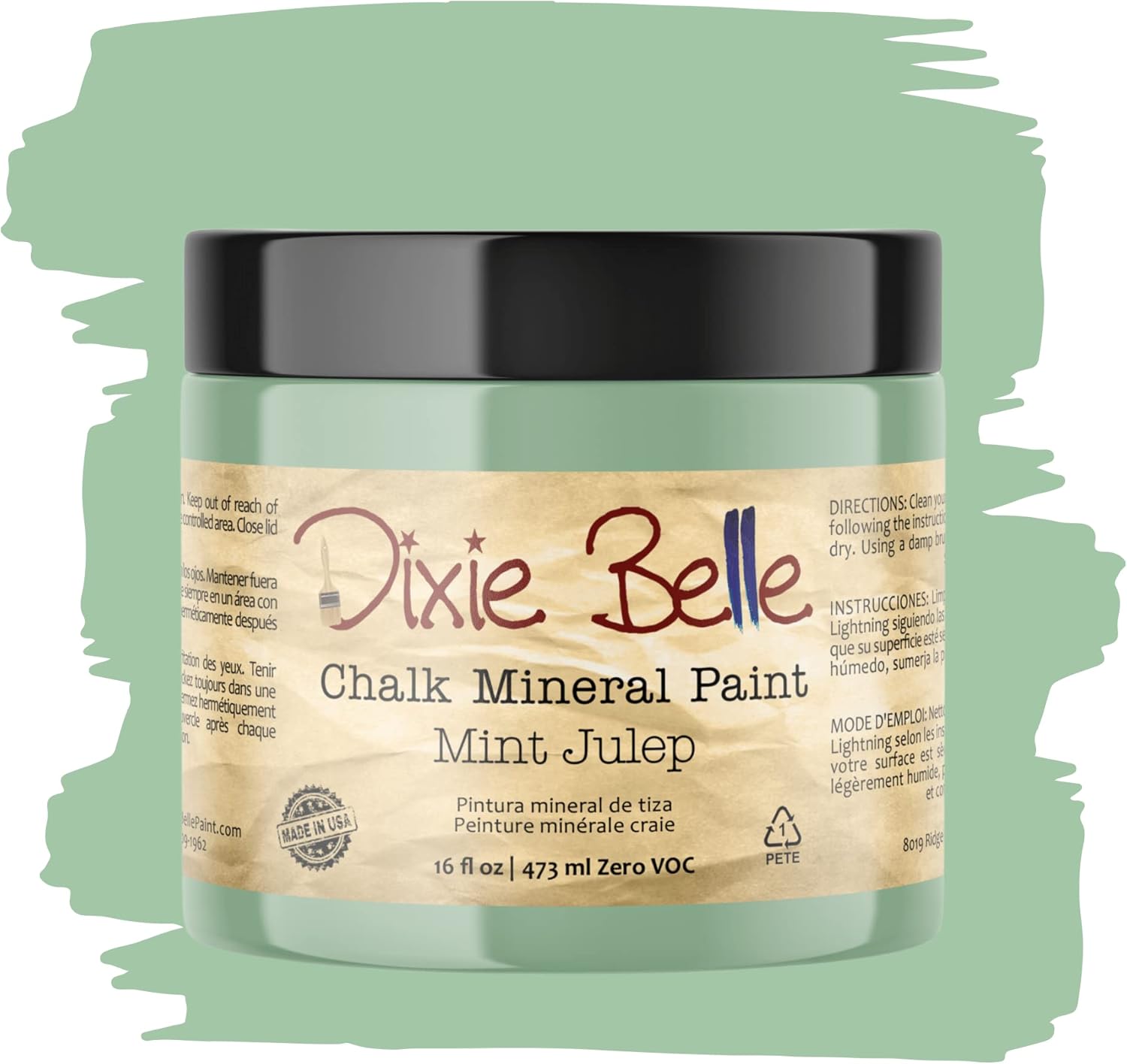 - CHALK MINERAL PAINT β Mint Julep is a light green chalk mineral paint with yellow undertones. This beautiful soft green shade can make a statement in farmhouse, traditional, homey cottage and more decor. Our chalk mineral paint is ideal for wood, metal, plastics, brick, stone, glass, concrete, and so much more. You can pair this with a dark wax or glaze to create distressed farmhouse furniture. An 8oz container of this paint should cover about 38 sq. ft.