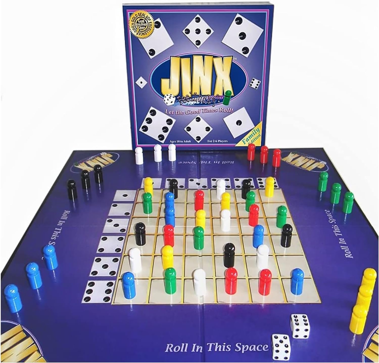 - Race to line up your game pieces in a row on the board. But one roll can change everything. Just when you are getting close to winning – JINX! – you might have to start over again.