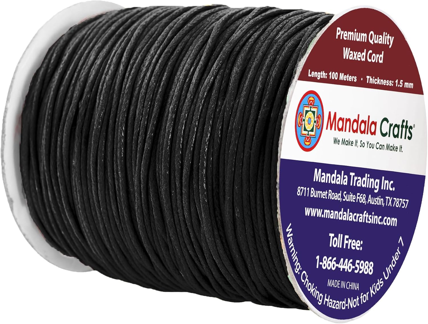 - Bulk Black Waxed Cord Roll: The non elastic colorfast 1.5mm cotton cord with heat treatable ends is fraying resistant & bleed free. The continuous 3 ply 109 yds long 1.5mm jewelry waxed cord made from 100 percent cotton is easy to cut, tie, knot, or glue.