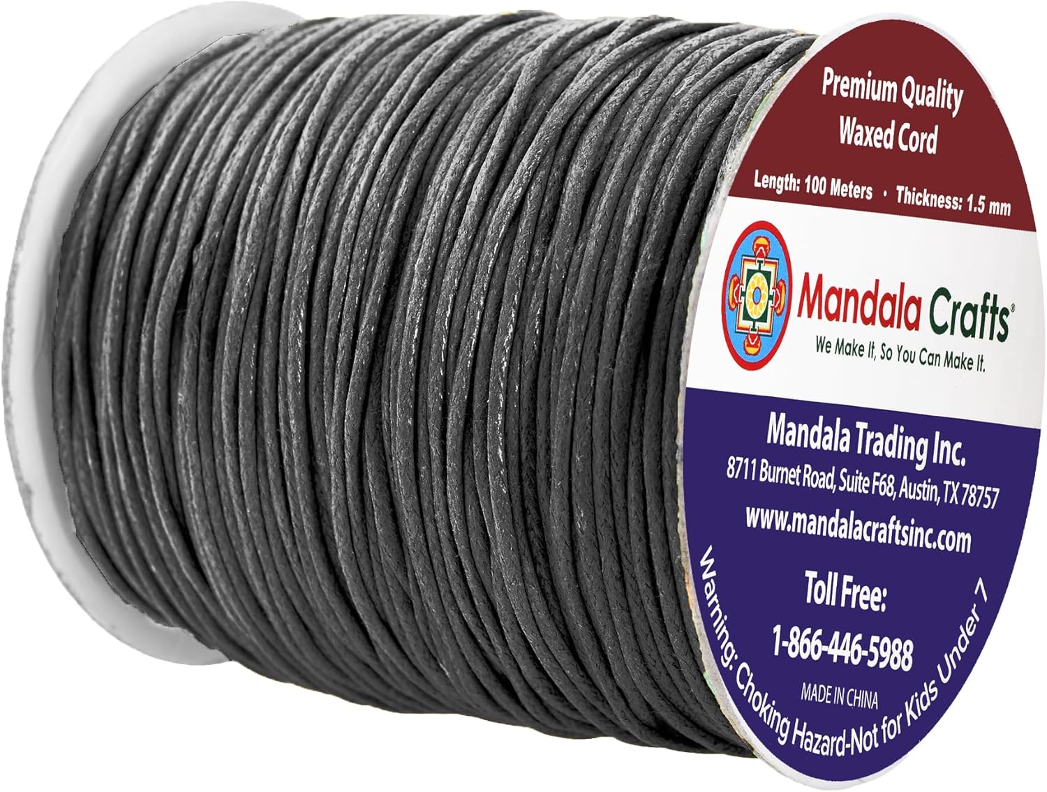 Mandala Crafts 1.5mm 109 Yards Dim Gray Cotton Waxed Cord for Jewelry Making Bracelet Cord Waxed String - Beading String Thread Jewelry Cords for Necklaces String
