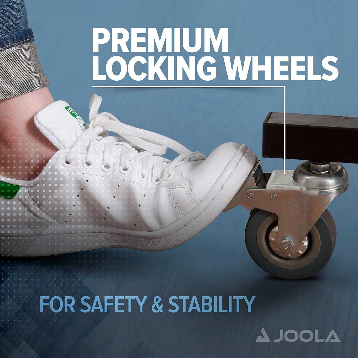 - SAFE & MOBILE STORAGE: Folding halves sit on separate 4-wheel trolley systems for mobility when alone or nested together. Automatic anti-tilting locking devices and 4 locking caster wheels per half provide added safety during play, transport & storage