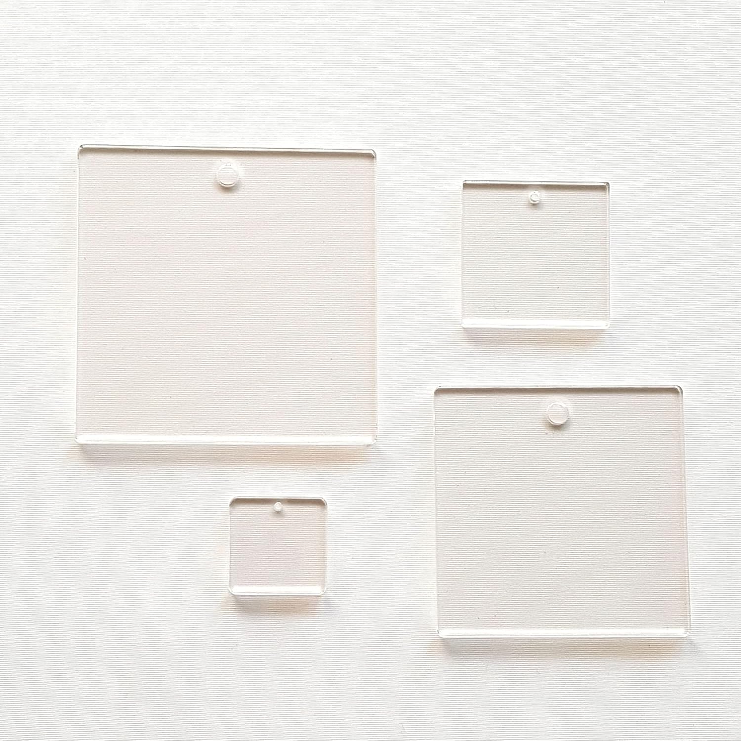 - Package of 25 Units. Acrylic Square With Hole 1/8" Thick. Laser cut with polished edges