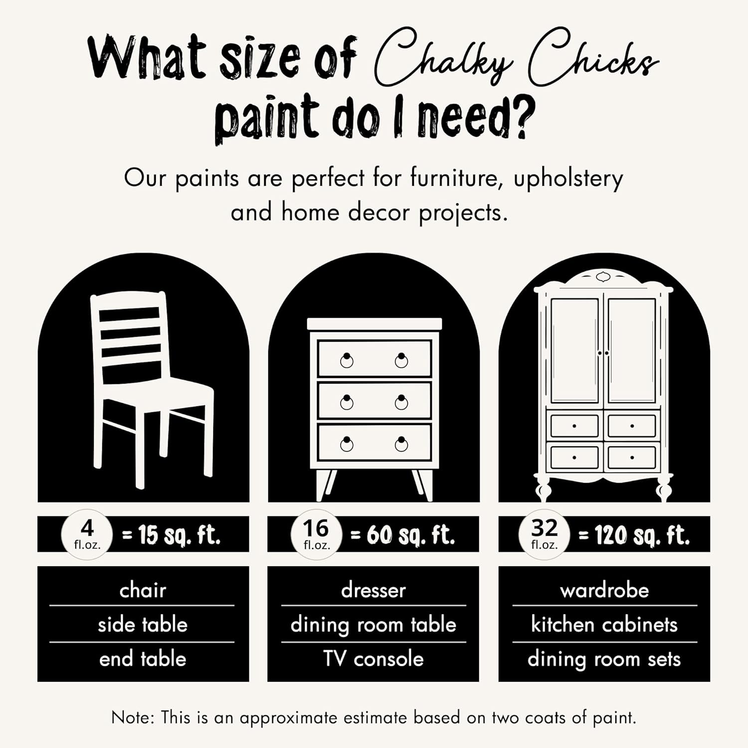 - TRANSFORM FURNITURE AND HOME DECOR WITH EASE: Chalky Chicks will save you time, money, and hassle. No sanding, priming, or multiple coats needed—just start painting your furniture with our cabinet paint no sanding or priming. Our paint is suitable for wood, metal, concrete, textiles, laminate, and more. Whether you prefer navy blue chalk paint, light blue paint, or green chalk paint, our chalk paint for furniture transforms any space with ease, making it ideal for DIY projects & craft painting.