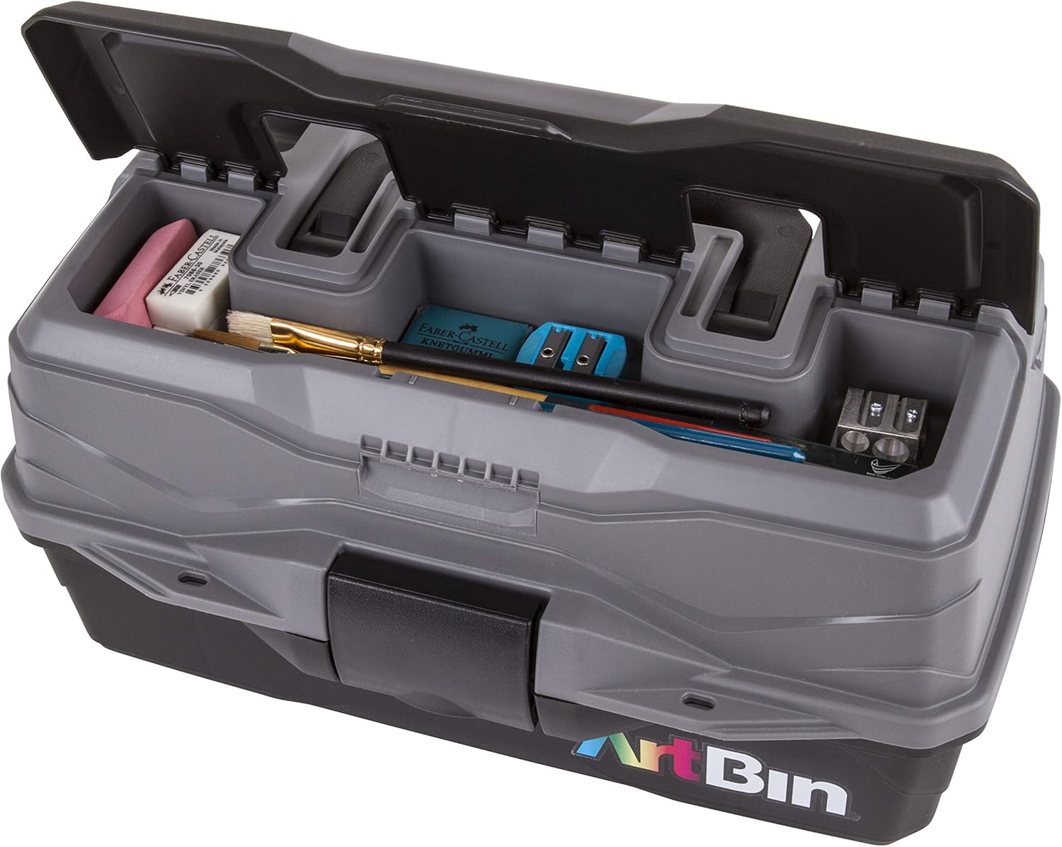 - Art Supply Box: The ArtBin 1 tray supply box is designed to store all of your arts and crafts supplies such as paint brushes, markers, paints, stamps, glues and more all in one place.