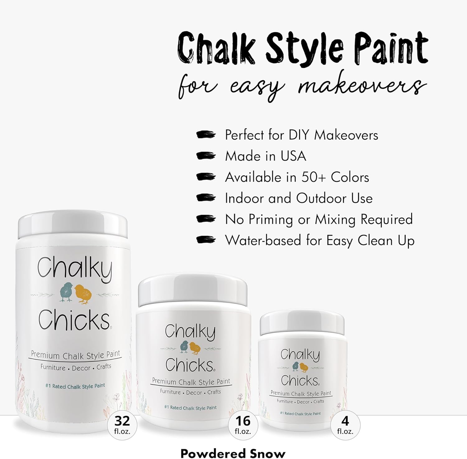 Chalky Chicks All-in-One Chalk Paint for Furniture or Cabinet -32 FlOz-Matte Finish Powdered Snow (Pure White) for Metal, Wood Furniture Paint - No Sanding All-in-One for Home Decor & Crafts, USA Made
