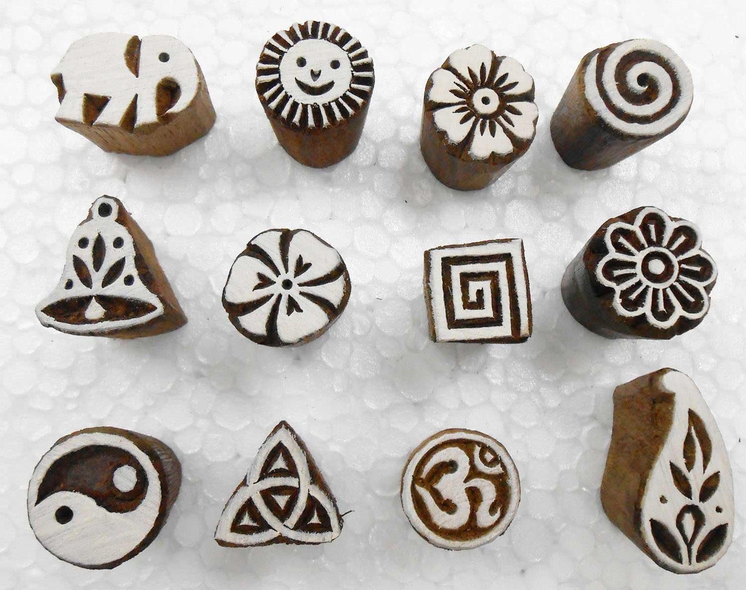 - Wholesale Lot of 12 Exotic Small Wooden Block Stamps for Textile Printing/ Henna Tattoo/ Scrapbooking/ Designing Saree Border