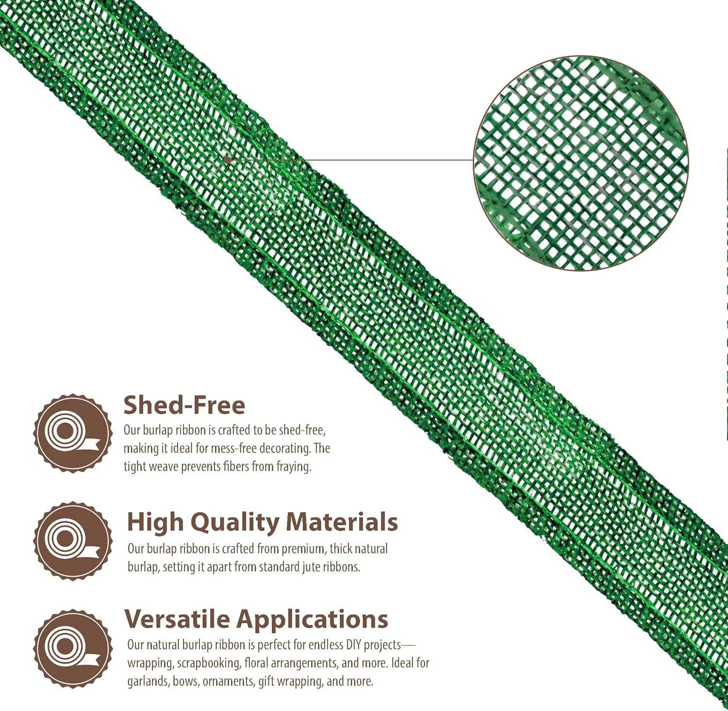 - Natural Burlap Ribbon: Compared to other jute burlap ribbons, our rustic burlaps ribbon with a fray & shed-resistant hemmed edges is made from thicker green burlap fabric. The indoor & outdoor colored burlap crafts ribbon is colorfast and will not bleed.