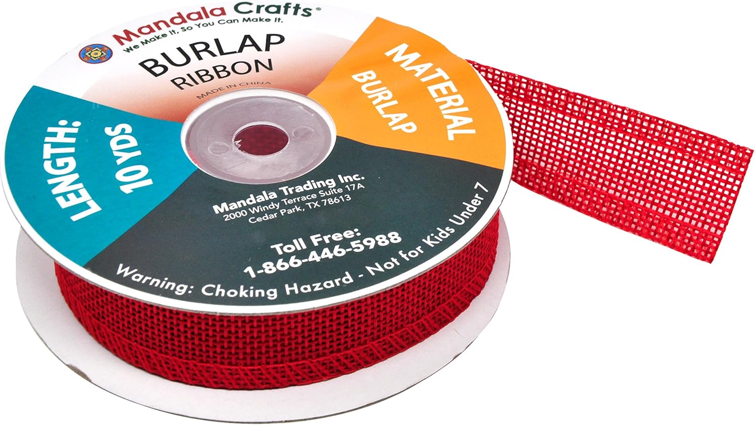 Mandala Crafts Red Burlap Ribbon 1 Inch Wide Jute Ribbons for Crafts - 20 Yds Roll Rustic Burlap Wrap Trim Ribbons for Wreaths Bows Wedding Party Decoration