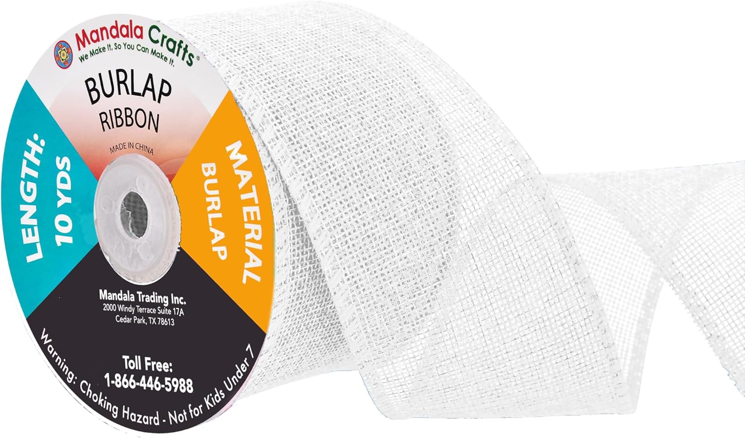 Mandala Crafts White Burlap Ribbon 2.5 Inches Wide Jute Ribbons for Crafts - 20 Yds Roll Rustic Burlap Wrap Trim Ribbons for Wreaths Bows Wedding Party Decoration