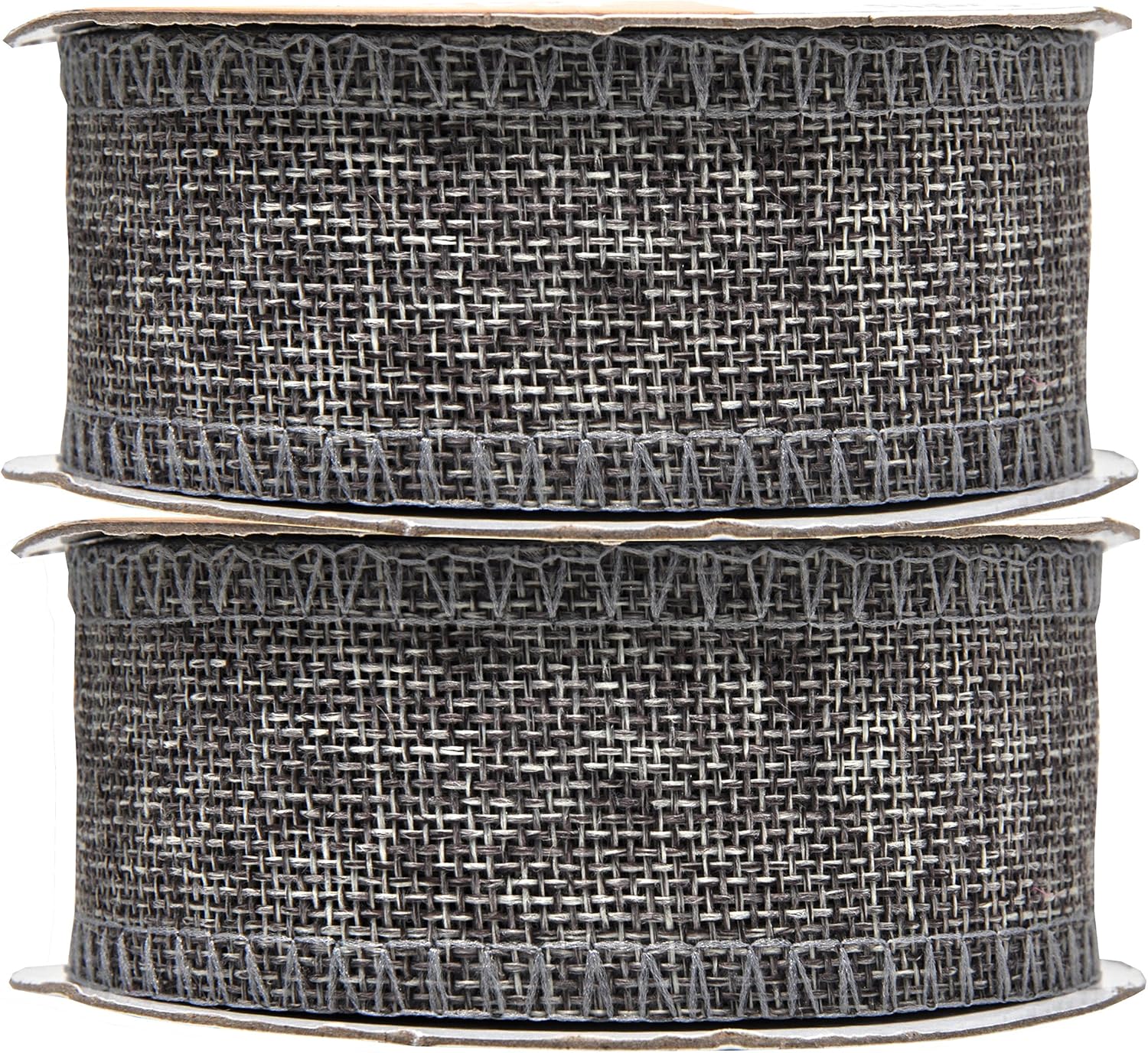 - Bulk Burlap Ribbon Gray Linen Ribbon: Each continuous 1.5 in colored burlap roll is 10 yard long. With two grey burlap rolls, total 20 yards long, the burlap ribbon bulk pack is handy to decorate trees and mason jars or hang pictures.