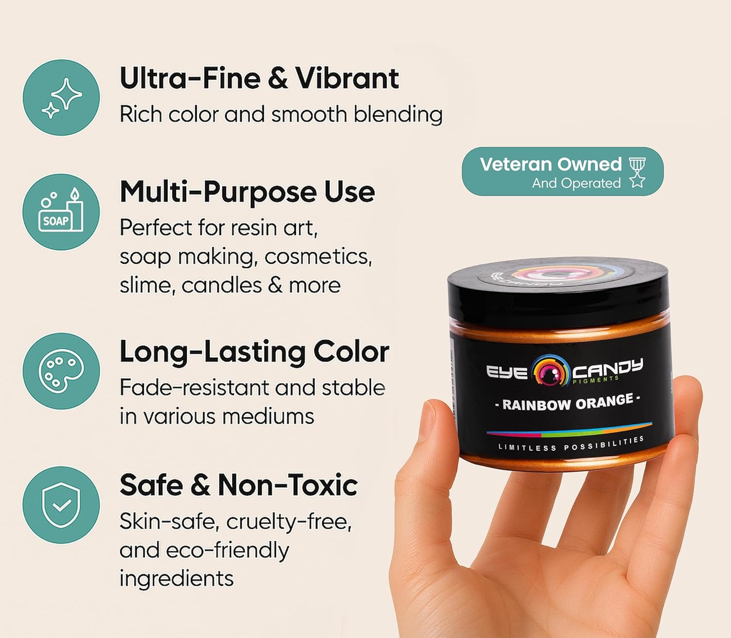 Eye Candy Pigments Premium Orange Mica Powder - Rainbow Orange (50gr) - for Epoxy, Resin, Soap, Paint, Woodworking, Acrylic Pouring, Bath Bombs, Fishing Lures - DIY Arts and Crafts Additive