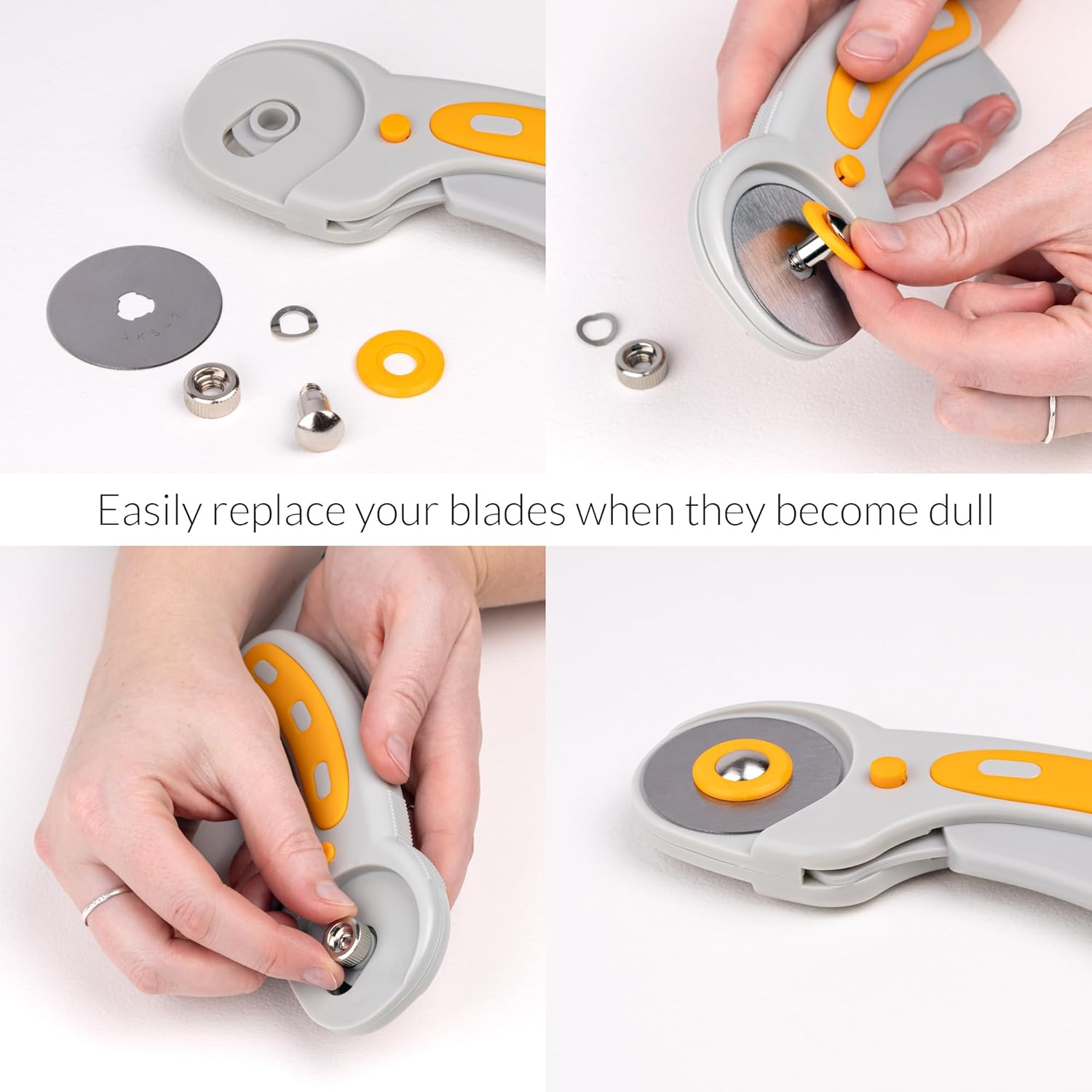 - For Right- and Left-Handed Users - This fabric roller cutter is a must-have for crafters! Its quick-change blade system allows easy left- or right-handed use—just place the blade on either side of the fabric cutting wheel and cut. Compatible with rotary blades 45mm refill, this rotary knife is ideal as a tshirt cutter tool or rotary cutter for quilting