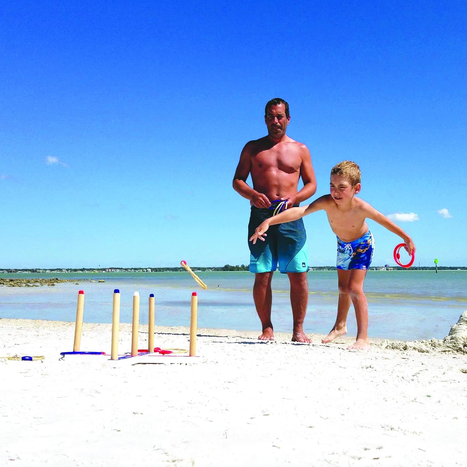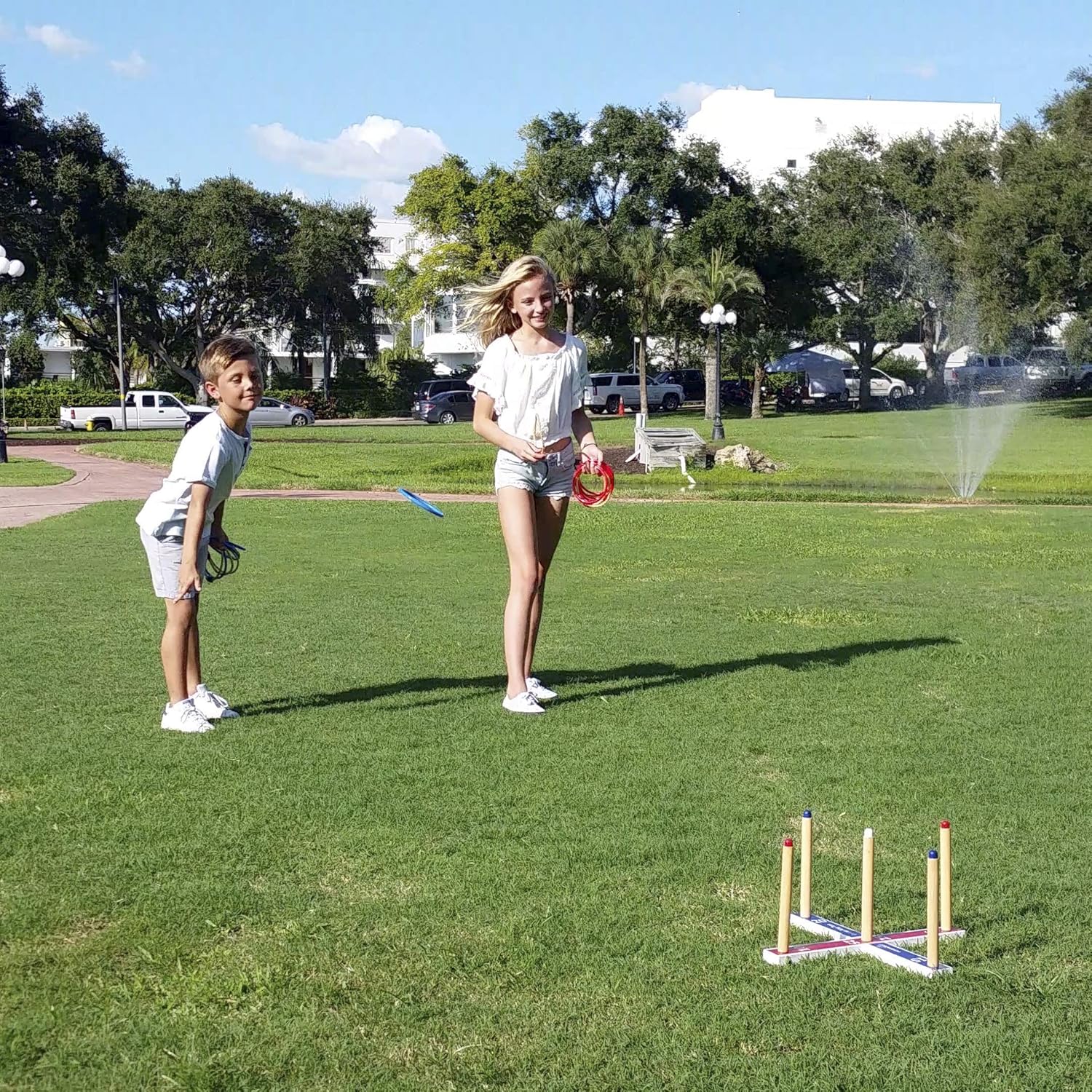 - Ring toss game for kids that comes fully equipped with a 17" base, 16 ring toss rings and a durable carry bag. A great choice for indoor and outdoor games for family and friends.