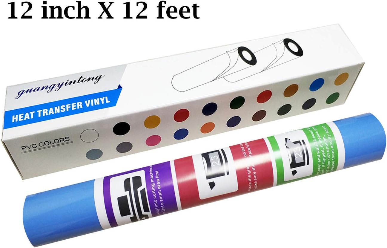 guangyintong Heat Transfer Vinyl Sky Blue HTV Rolls, 12" x 12ft Sky Blue Iron on Vinyl for T-Shirts, Matte Surface Sky Blue HTV Vinyl for All Cutter Machine Easy to Cut & Weed for HTV DIY Design