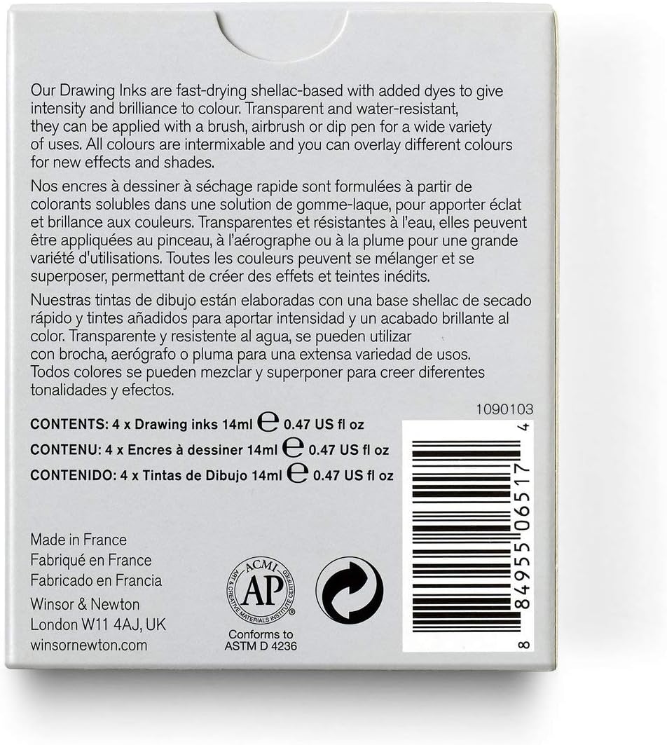 - Contains 4 x Winsor & Newton drawing inks 14 ml/0.47 us fl oz