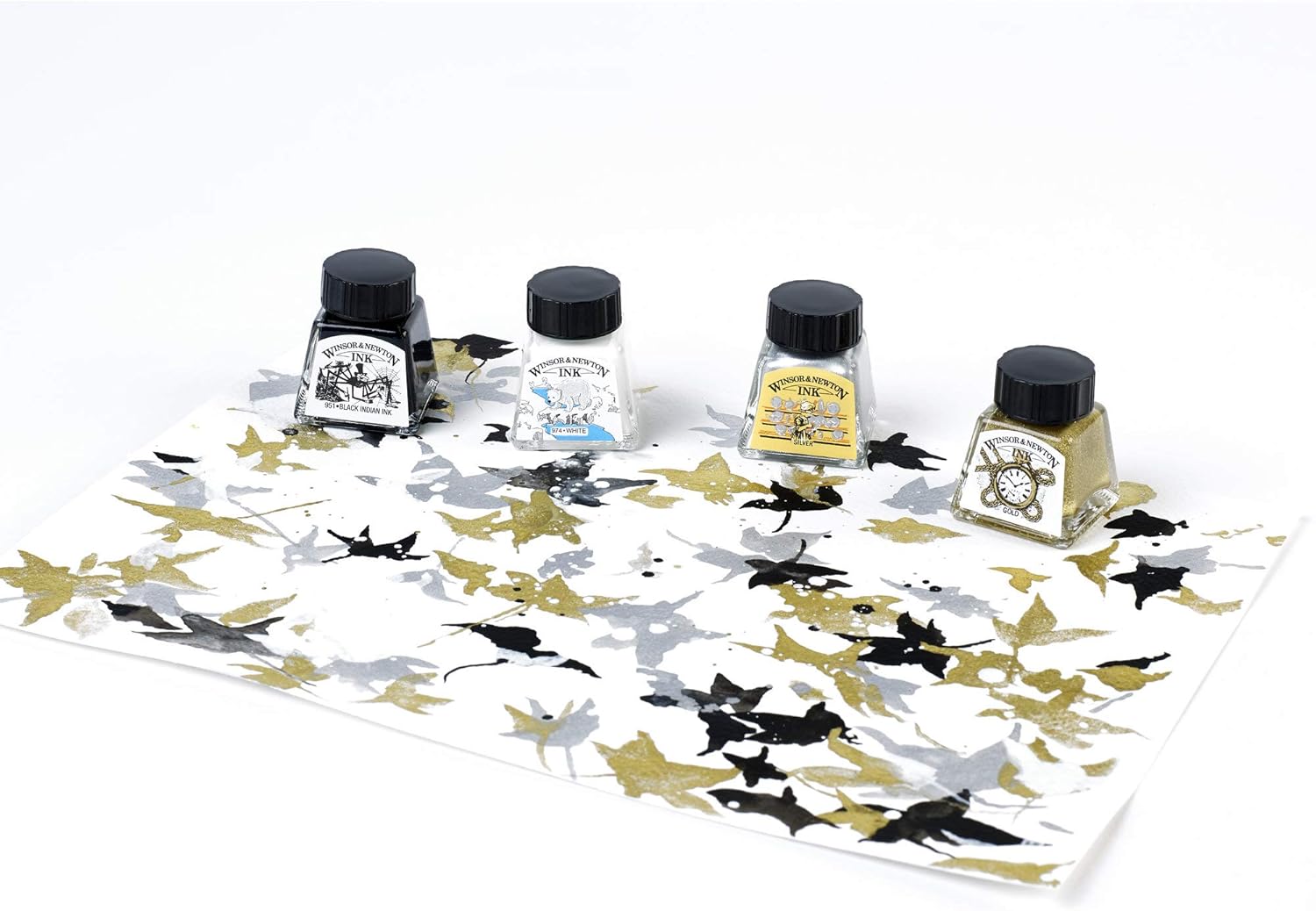 Winsor & Newton Collection Drawing Ink Set, Set of 4, Black, White, Metallic Tones