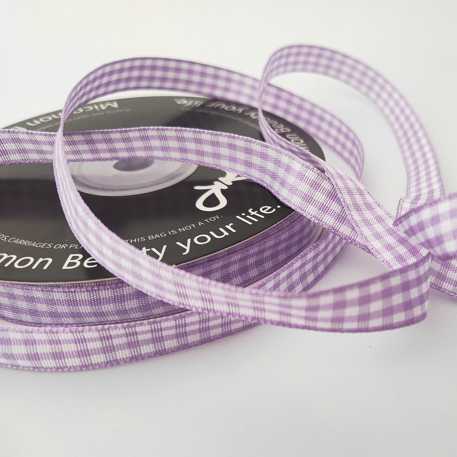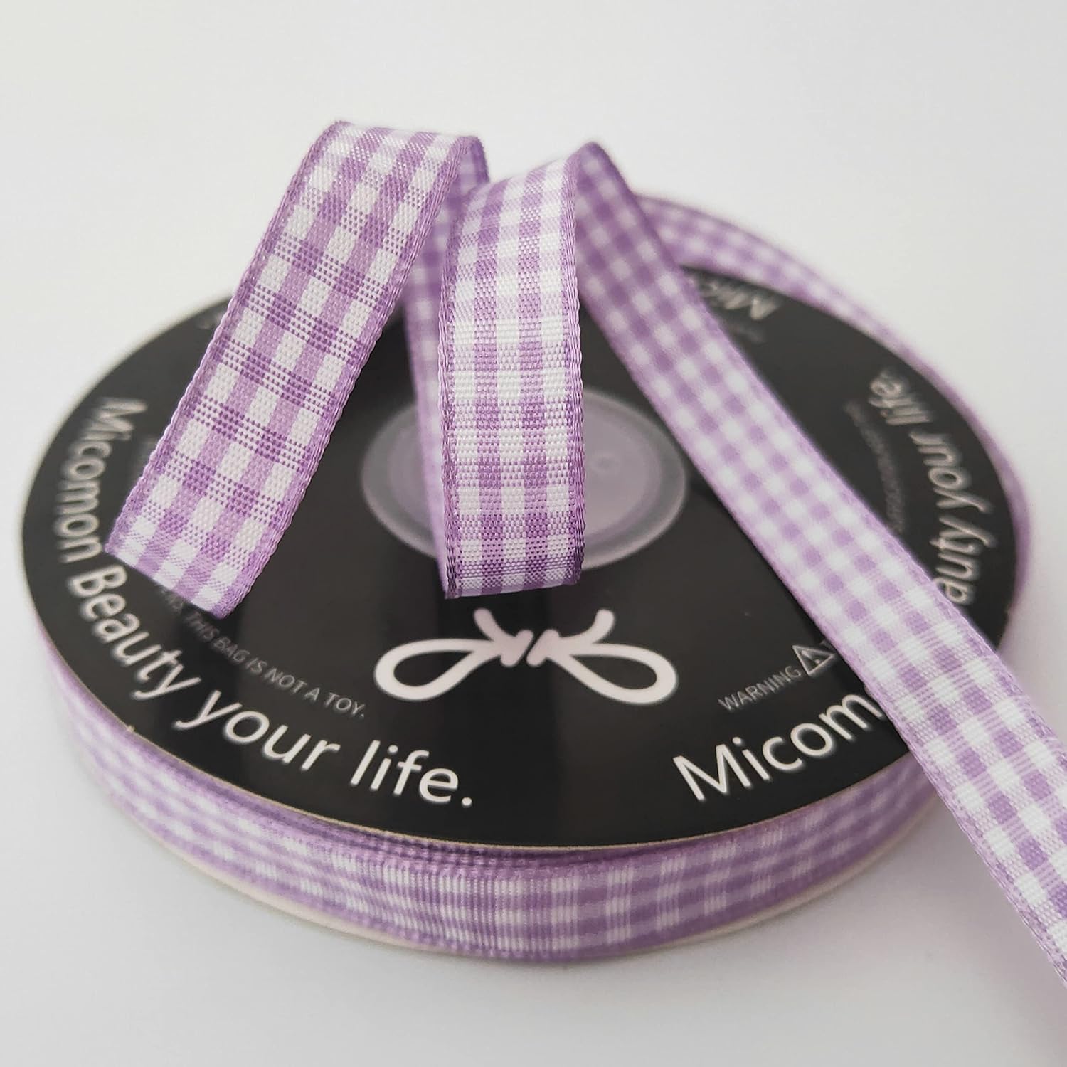 Purple Gingham Plaid Checked Ribbon 25 Yard Each Roll 100% Polyester (3/8", Purple)