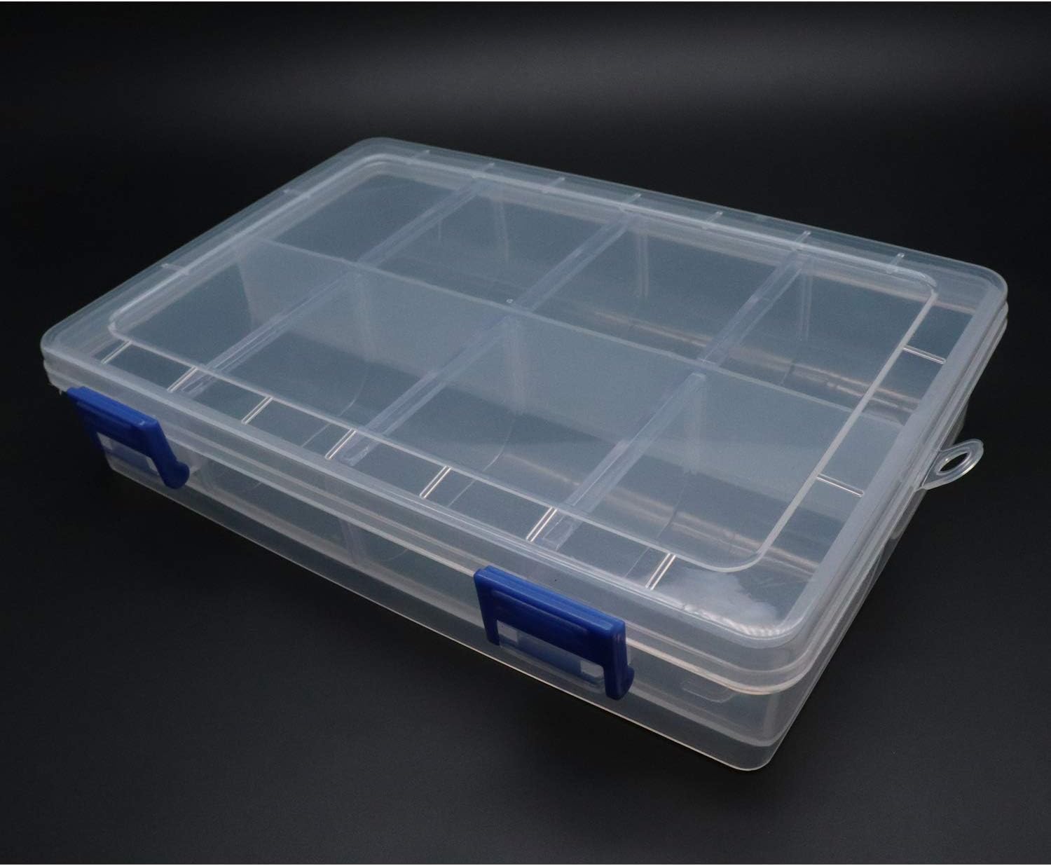 Xiaoyztan Clear Plastic Organizer, 8 Grids with Adjustable Dividers, Jewelry Box Bead Storage Container for Small Parts, Fishing Tackle, DIY Crafts, and Earrings