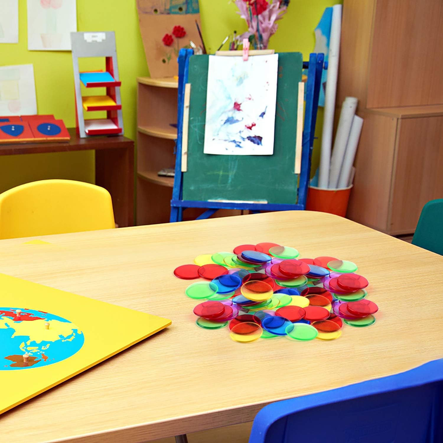 Coopay 300 Pieces Counters Counting Chips Plastic Markers Mixed Transparent Colors for Bingo Chips Game Tokens, Contain White, Blue, Green, Yellow, Red, Purple Colors