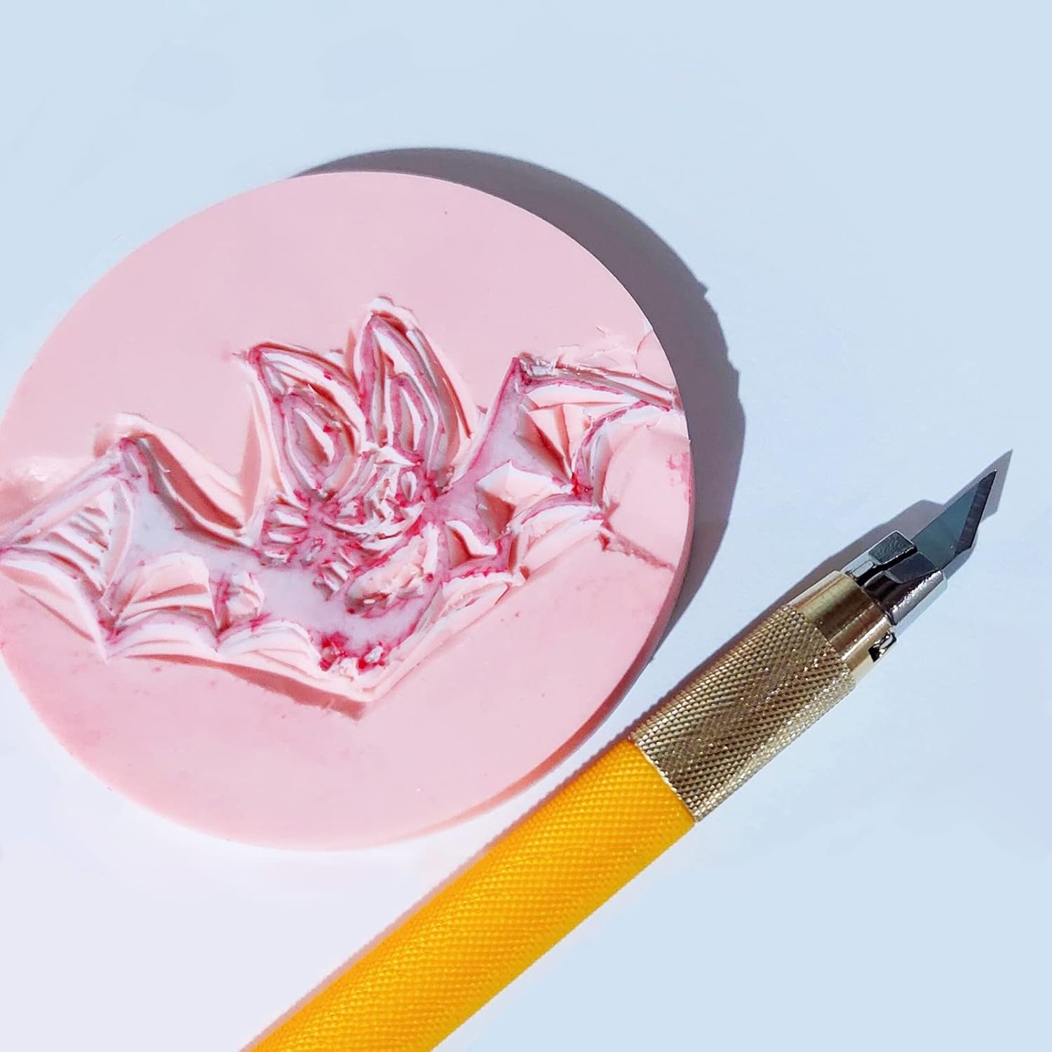 - Pack of 16 pieces pink rubber carving blocks; Each is measures 6" length x 4" width x 0.31" thickness