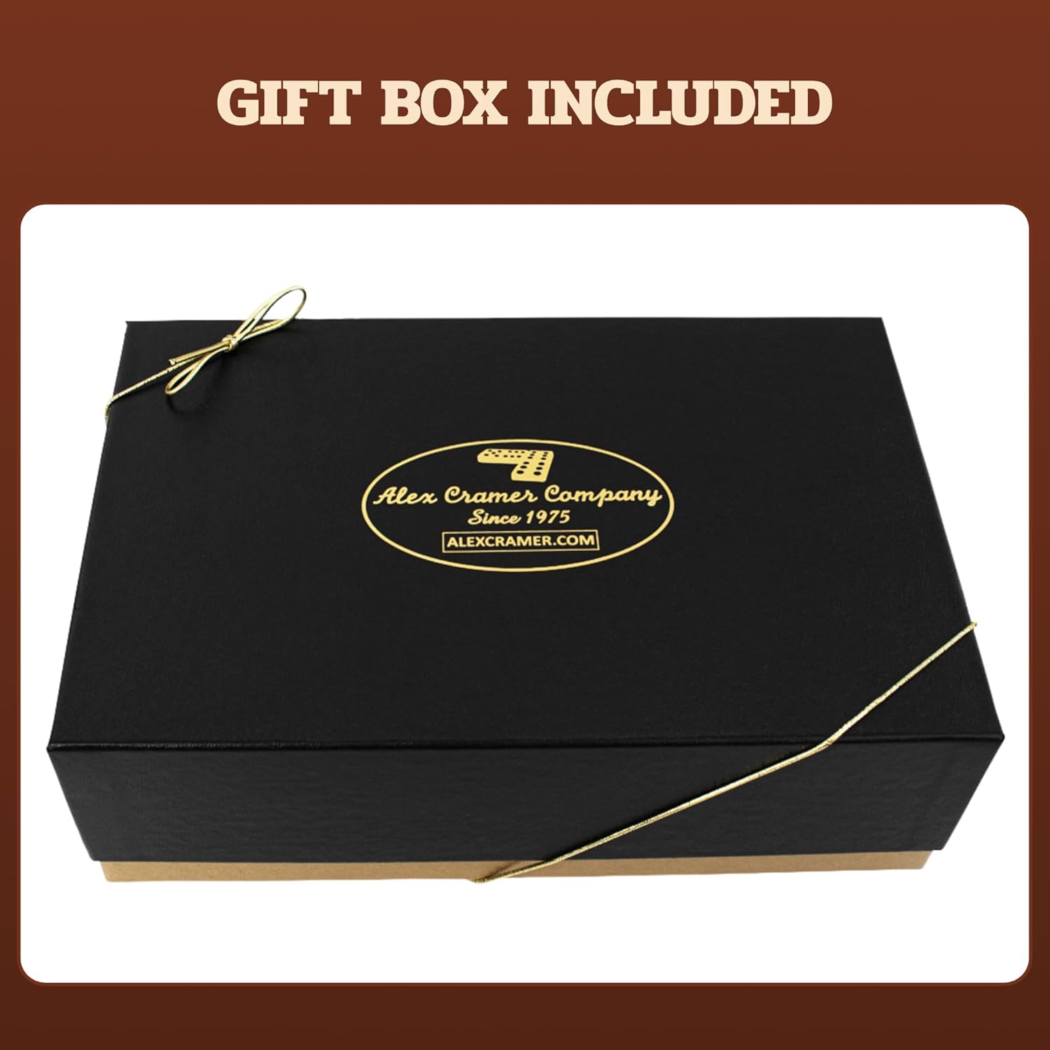 - AMERICAN-MADE HAND-CRAFTED BLACK WALNUT CASE made in USA with brushed brass closure, brass accents & brass hinges. Measures 8-3/8" x 5-1/2" x 2-1/2". No-scratch felt bottom for protection of the case and your table. Our domino cases are American-Made by experienced woodworkers. All domino sets are assembled in the USA.