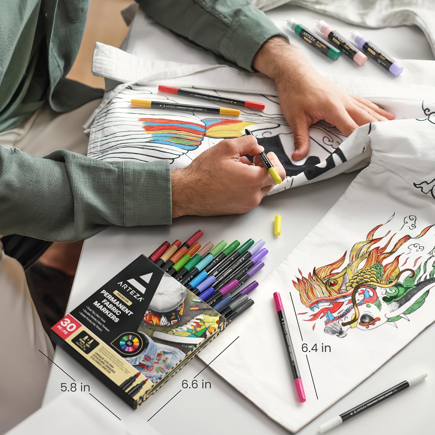ARTEZA Fabric Markers, Set of 30, Colored Permanent Textile Markers, Dual-Tip Pens for Coloring T-Shirts, Jeans, Jackets, Backpacks