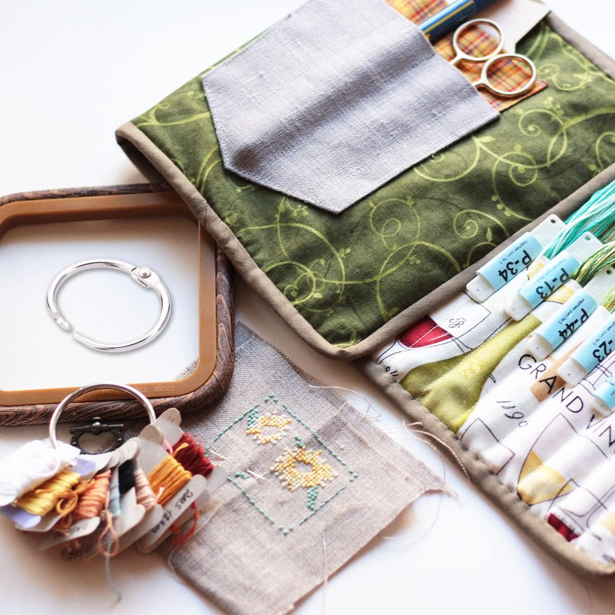 - Metal rings are versatile - you can use them to hold embroidery thread spools. Choose the color for whatever project you're working on, place them on the ring and they'll stay together securely. Great for cards, letters, scrapbooking, cookbooks, DIY calendars, photo albums, clutter and other items that can be hung or organized.