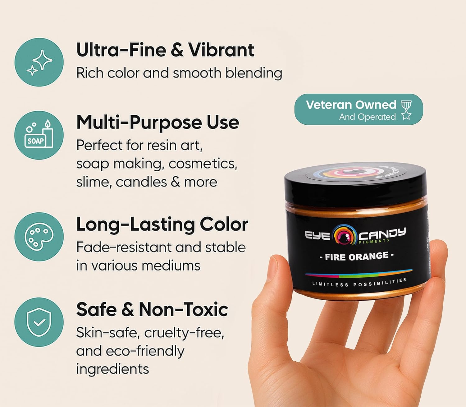 - MULTIPURPOSE ORANGE MICA POWDER β Experience the charm of Fire Orange, a satin orange pigment accentuated with yellow hues. It's an ideal choice for adding a warm glow to epoxy resin projects, acrylic paintings, and slime. This pigment also brings life to bath bombs, jewelry, and melt & pour creations. Its versatility enhances plastics and candle making, making it a go-to for artists and crafters seeking a vibrant yet subtle color.