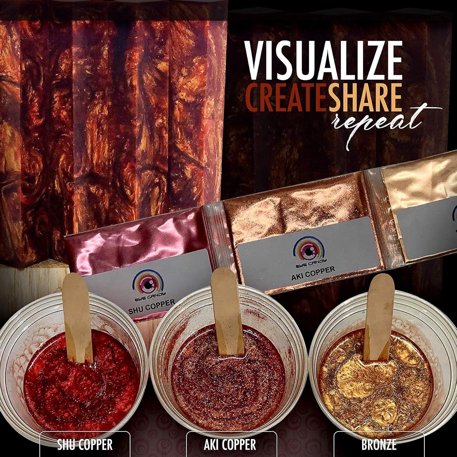 Eye Candy Pigments Premium Copper Mica Powder - Shu Copper (50gr) - for Epoxy, Resin, Soap, Paint, Woodworking, Acrylic Pouring, Bath Bombs, Fishing Lures - DIY Arts and Crafts Additive