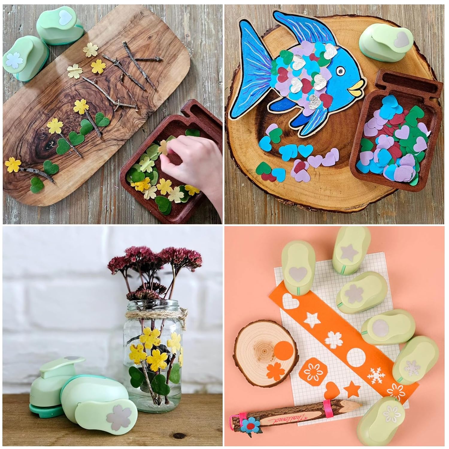 - A PERFECT SET : Our craft punches for paper crafts will be a good helper for making all kinds of exciting confetti. You will get 6 hole punch shapes set for kids & adults: a star hole puncher, a heart hole punch, a circle hole punch, a snowflake shape hole punch, a chrysanthemum hole punch, and a cherry blossom hole punch. Punches for paper crafts with different shapes make your crafting more interesting