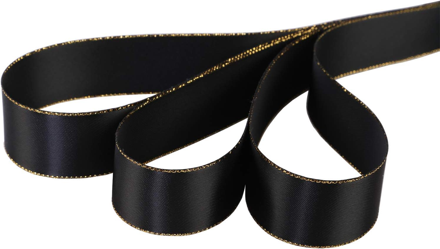 ITIsparkle 1" Inch Double Faced Satin Ribbon 25 Yards with Gold Edges, 1" X 25Yd - Black