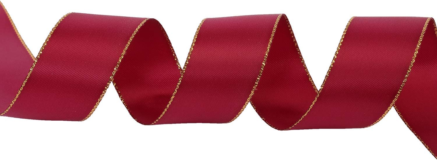 ITIsparkle 1" Inch Double Faced Satin Ribbon 25 Yards with Gold Edges, 1" X 25Yd - Wine