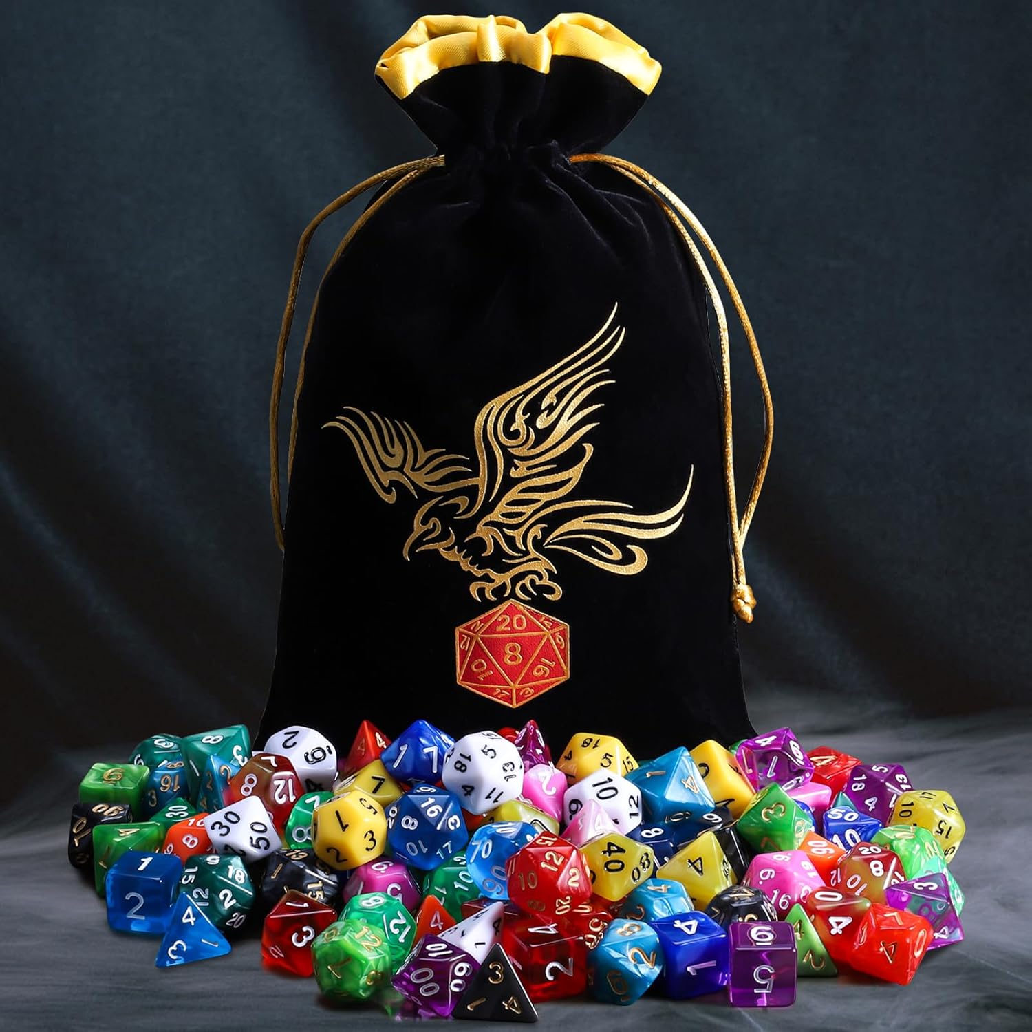 QMay DND Dice Set 15 X 7 Polyhedral Dice (105pcs) with 1 Large Flannel Bag, D&D Dice (D4 D6 D8 D10 D% D12 D20) for Dungeons and Dragons RPG MTG Table Games