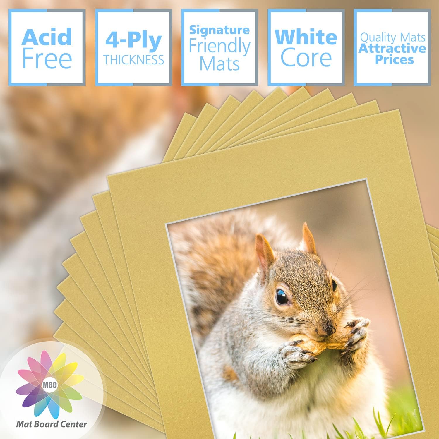 Mat Board Center, Pack of 10, 11x14 for 8x10 Old Gold Color Mats - Bevel Cut, Acid Free, 4-ply Thickness, White Core - for Pictures, Photos, Framing