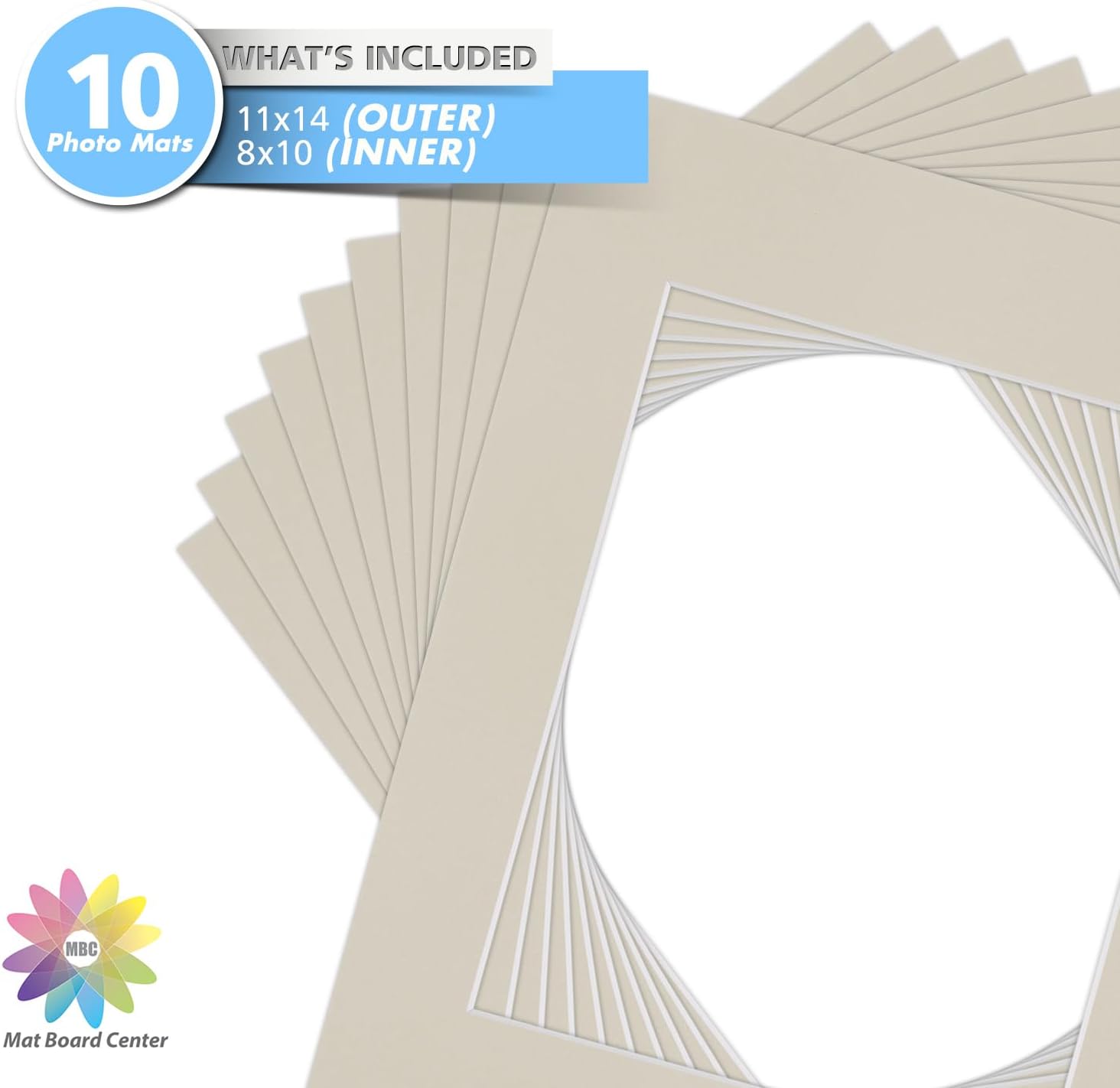 Mat Board Center, Pack of 10, 11x14 Mats for 8x10 Photos Light Gray Color - Bevel Cut, Acid Free, 4-ply Thickness, White Core - for Pictures, Photos, Framing
