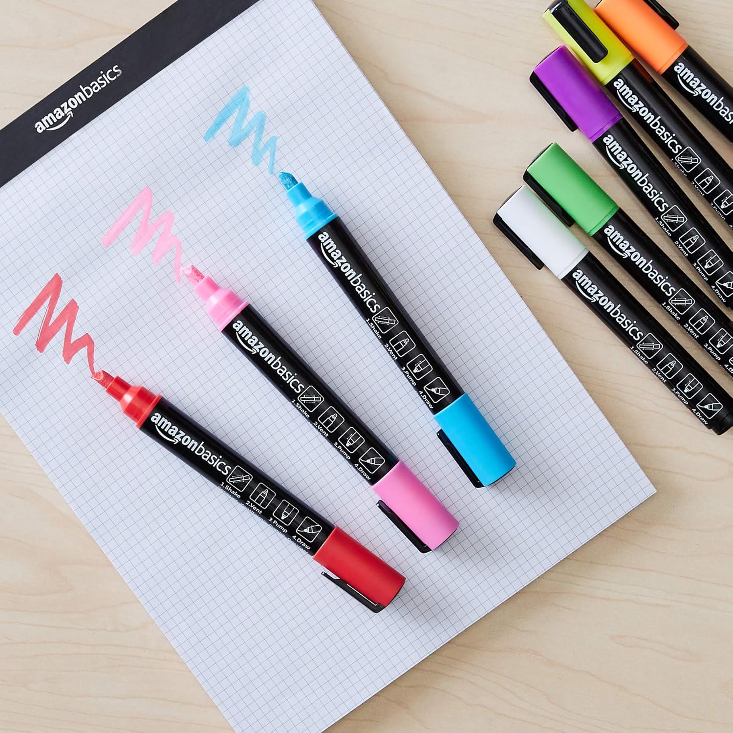 Amazon Basics Bullet/Chisel Reversible Tip Chalk Markers, Bold Point, 8-Pack, Bright Colors