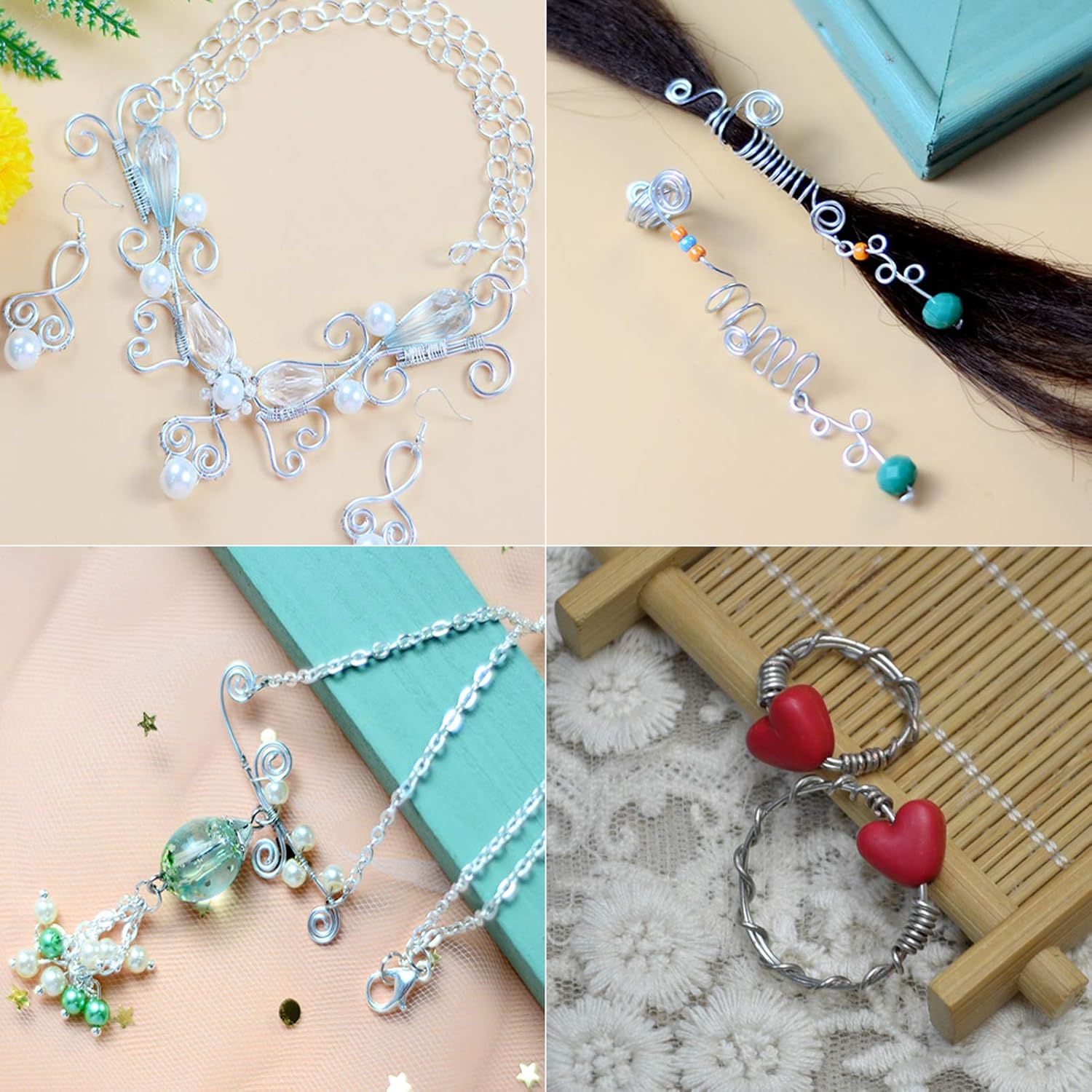 - Multi-functional Metal Wire: craft wire bendable can be wrapped around gemstones or made into earrings, necklaces, bracelets or chainmaille. Also can be shaped into wreaths, hangers, picture frames, holders, sun catchers, sculptures, napkin rings, letters, mesh, ornaments, bird feeders and other decorative embellishments