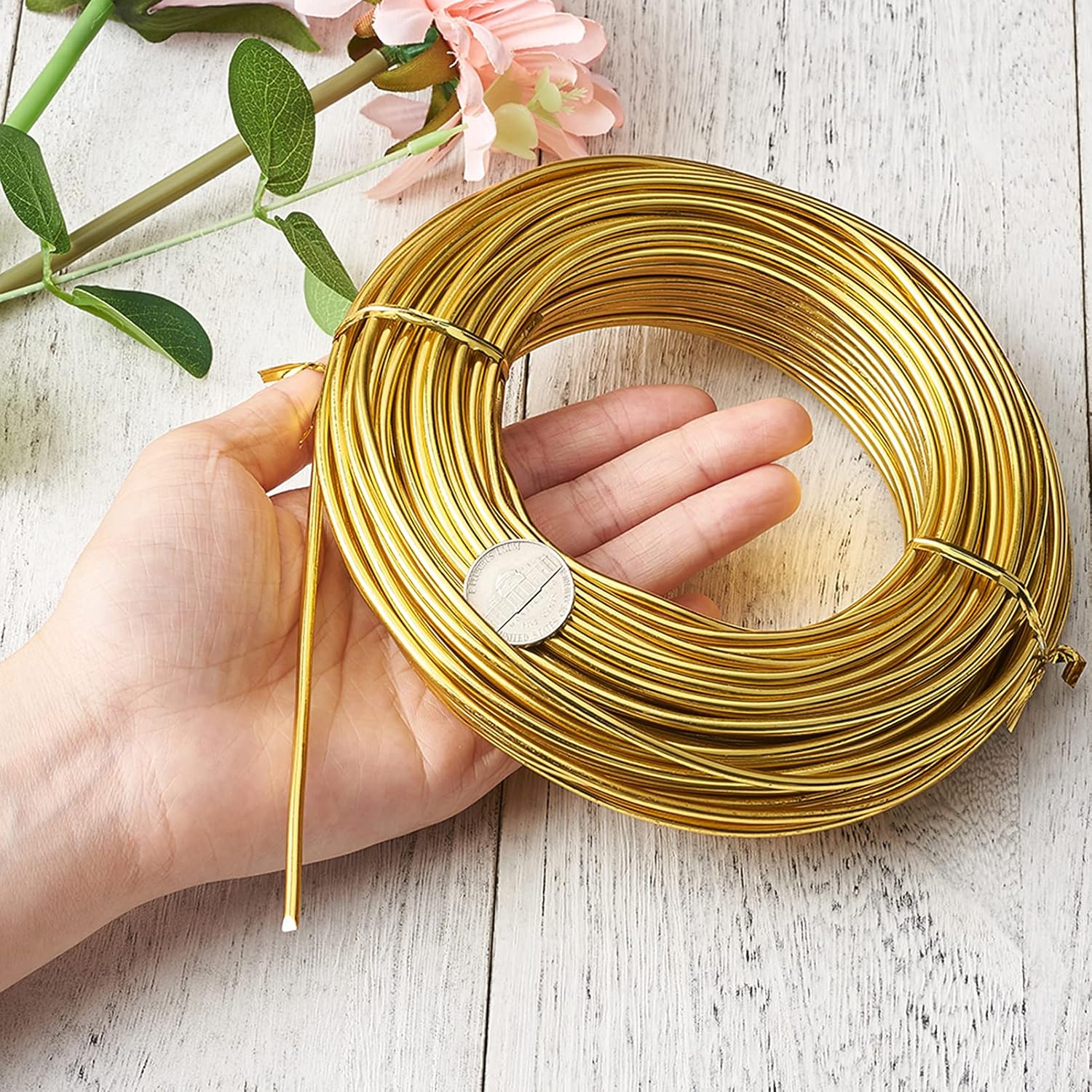 Fashewelry 82 Feet 9 Gauge Round Aluminum Wire 3mm Golden Bendable Metal Craft Wire for Beading Jewelry Craft Making 25m Long