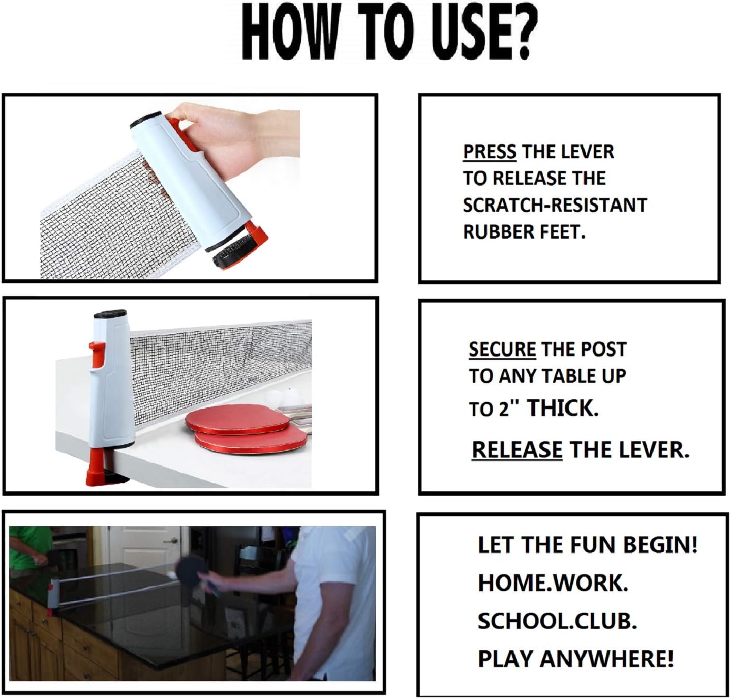 Ping Pong Net Table Tennis - Win SPORTS Paddle Set with Retractable Net,Play Anywhere Ping Pong Net for Any Table,2 Table Tennis Paddle& Rackets,3 Balls,Storage Case,Set with Retractable Table Tennis Net