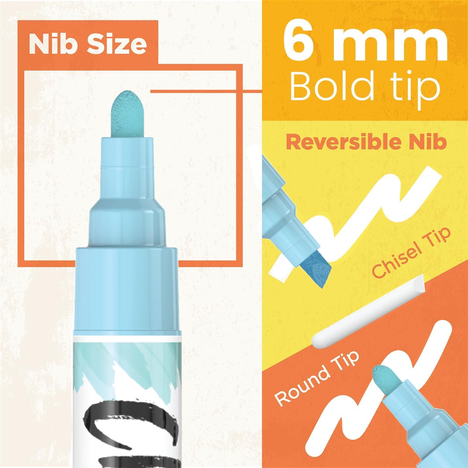 Liquid Chalk Markers for Chalkboard Erasable (20 Vintage Colors) - Bold Dry Erase Marker Chalk Pens for Blackboard, Windows, Bistro, Glass - 6mm Reversible Tip