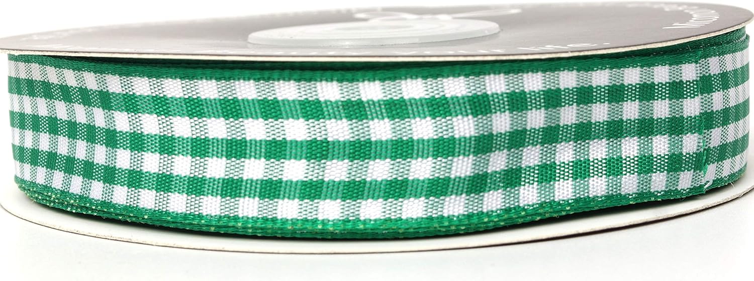Green Gingham Plaid Checked Ribbon 25 Yards Each Roll 100% Polyester (5/8",Green)