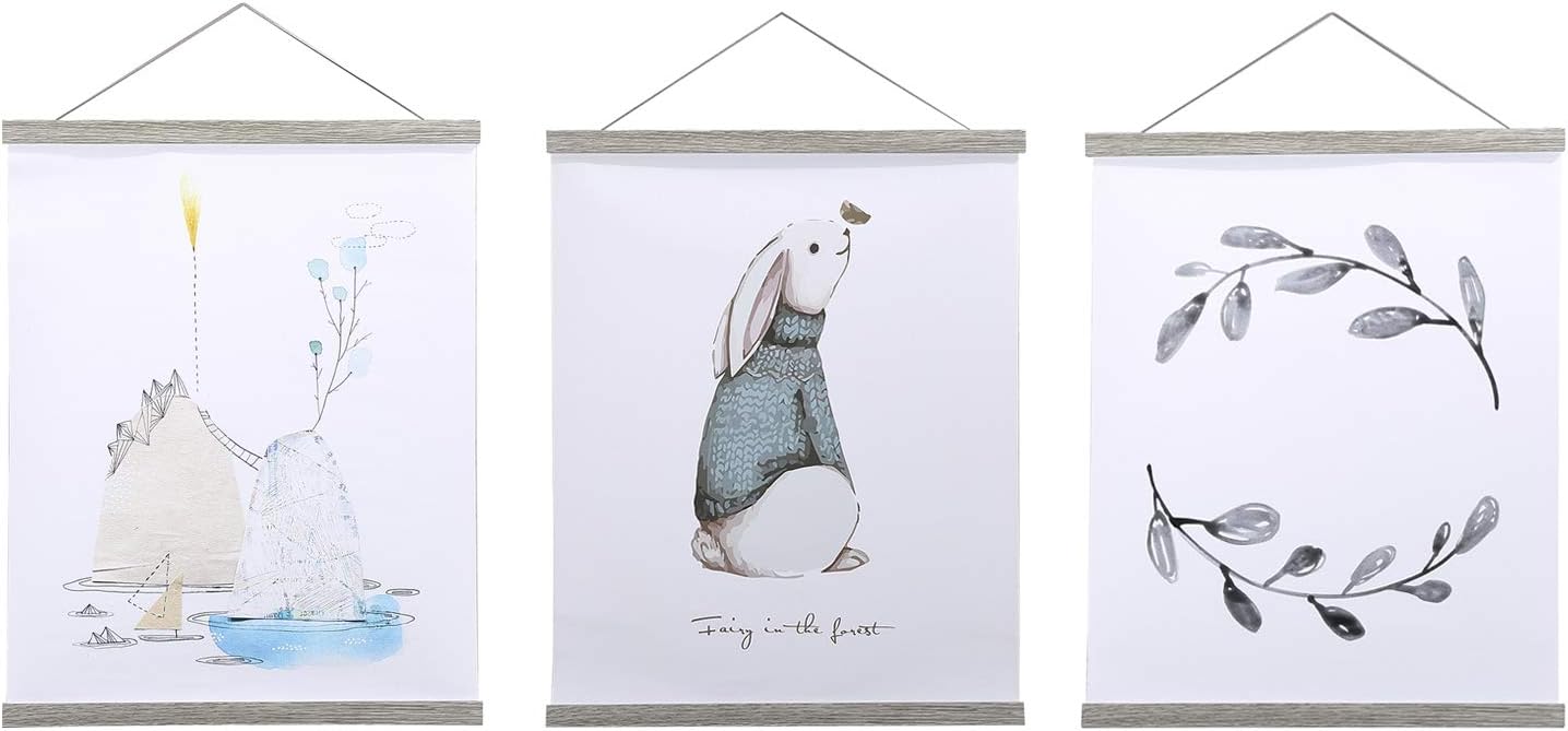 Ywlake Magnetic Poster Hanger, 11x17 11x14 11x22 Poster Frame Wood Wooden Magnet Print Posters Dowel Scroll Hanger Hangers Hanging Kit for Walls Map Canvas Artwork (Grey, 11")